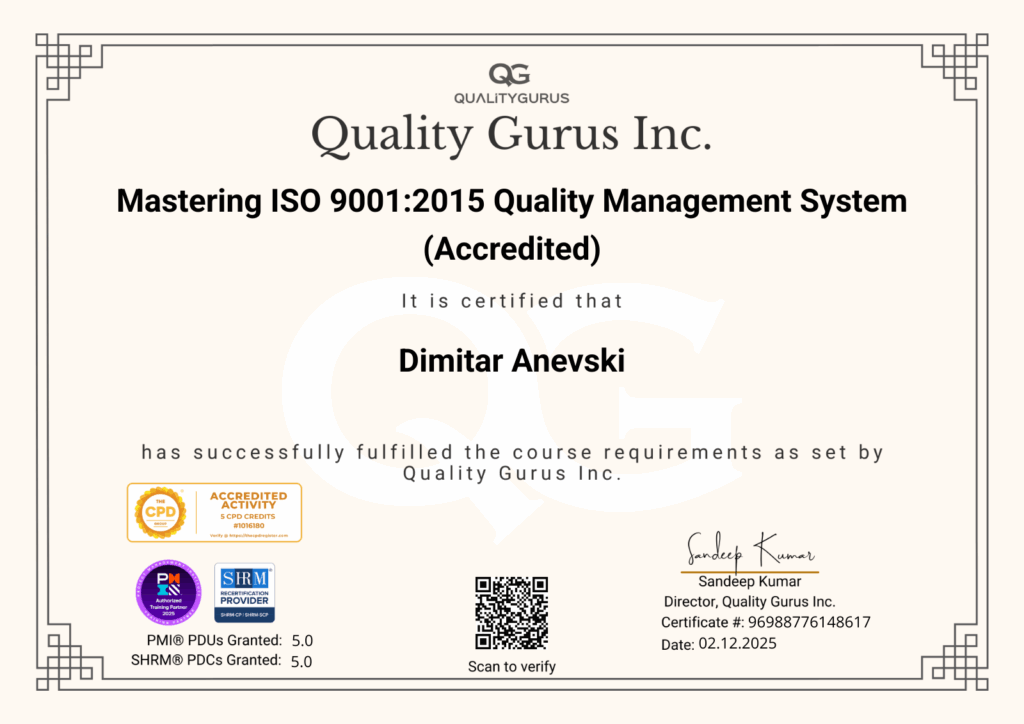 - Засилена репутација и доверба на засегнатите страни – Демонстрирање на вистинска посветеност на квалитетот кон клиентите, партнерите, инвеститорите и јавноста.