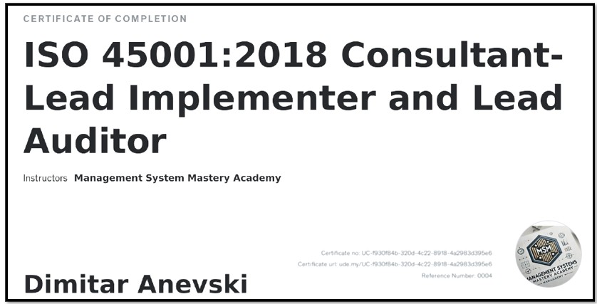 - Конкурентска предност – Многу големи клиенти, мултинационални корпорации и јавни тендери сега бараат или претпочитаат добавувачи сертифицирани по ISO 45001.